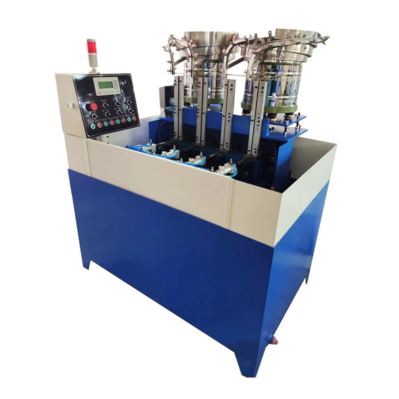 Nalika mesin taksi spindle papat ing operasi, bahan mentah pisanan dilebokake ing tray feed. Dheweke bakal kanthi otomatis diurutake menyang papat workstations, lan sawise proses nutul wis rampung, produk rampung bakal dibuwang kanthi otomatis.